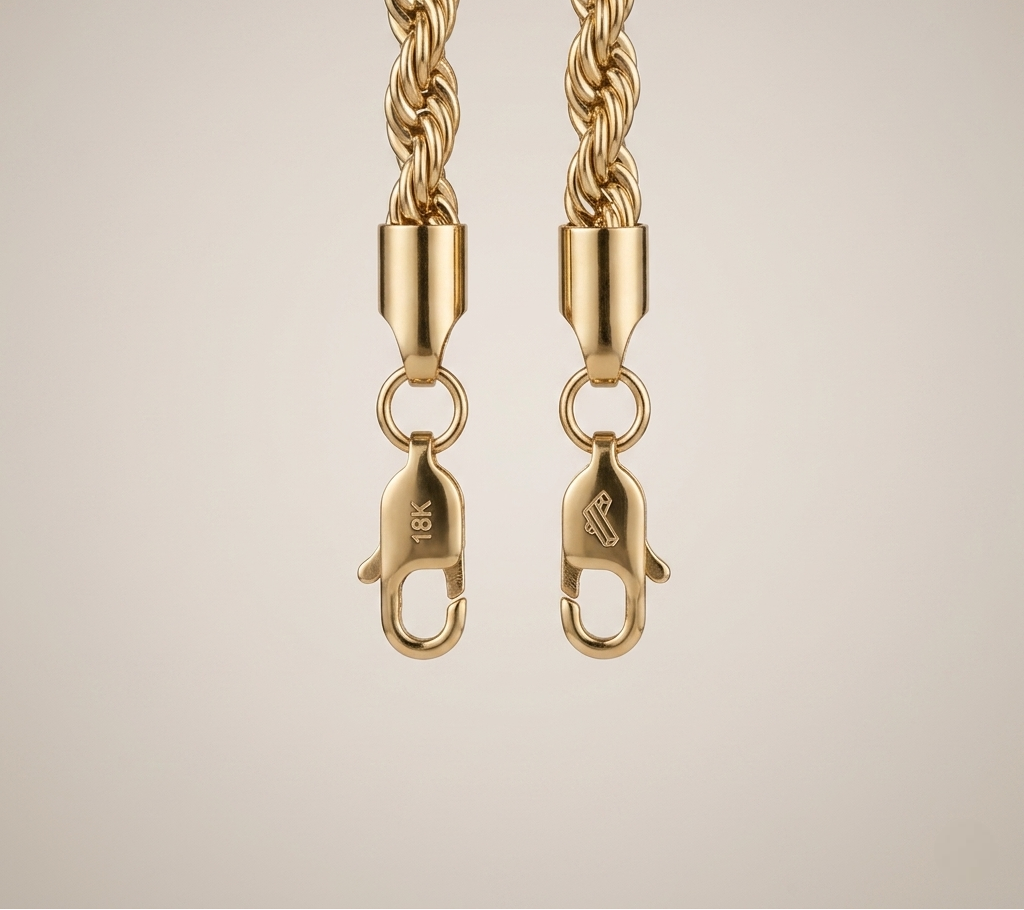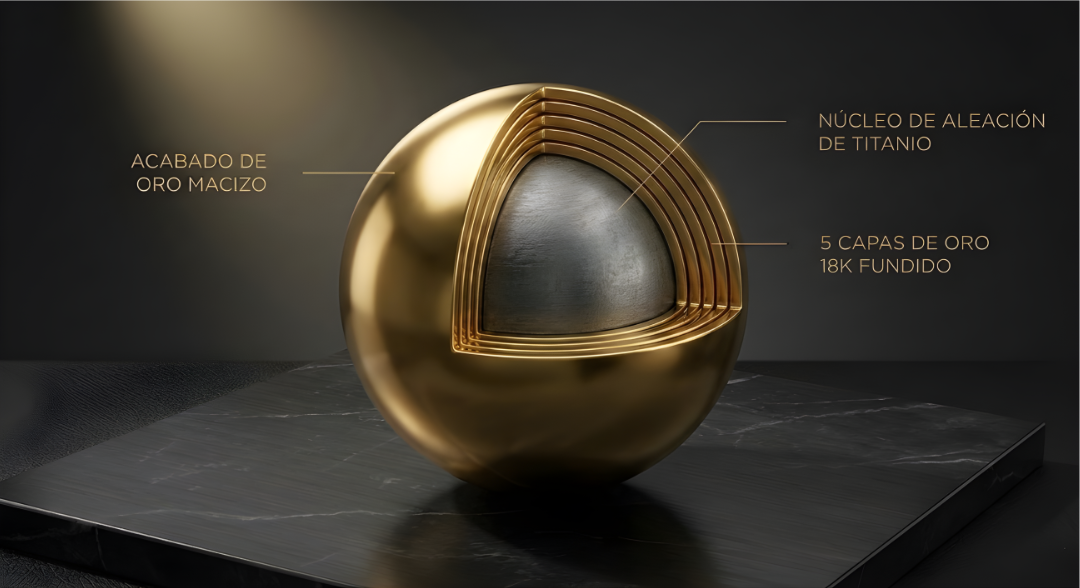 Una técnica superior diseñada para recrear con exactitud el color, peso y textura del oro italiano de 18k sólido, ofreciendo una experiencia visual y al tacto indistinguible del original, con una resistencia incomparable.